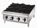 Hot Plate, counter top, gas, 24" heavy duty cast iron grates, (4) 22,000 open burners, manual control, removable drip tray, stainless steel front, aluminized steel rear and sides, adjustable 4" legs, AGA, CGA, NSF, 88,000 BTU. ( Toastmaster - TMHP4 LP ) Read more...